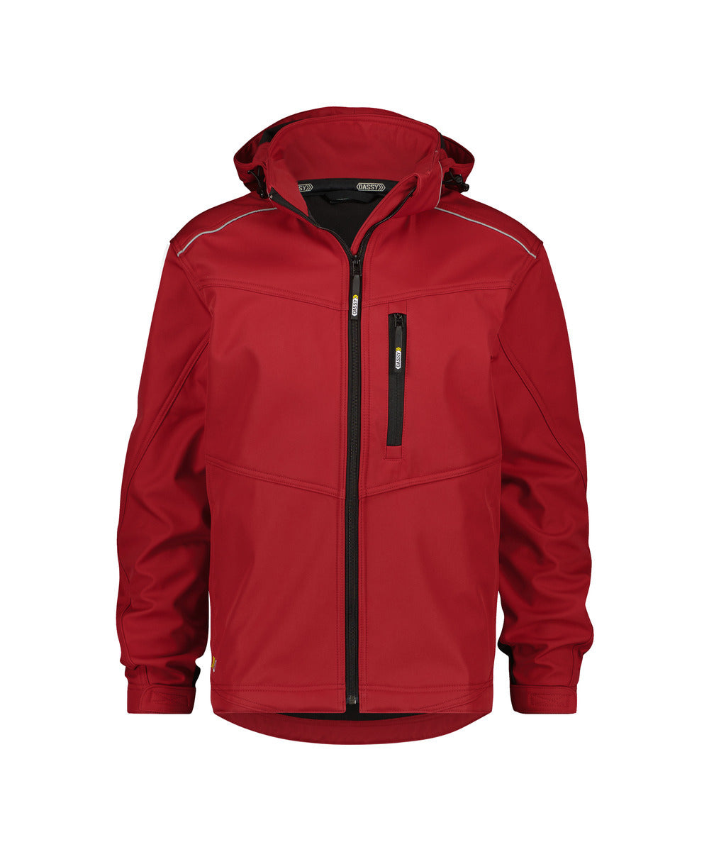 Der Bund dieser Softshelljacke von DASSY kann mit einer elastischen Kordel verstellt werden. Auch die Ärmelbundchen sind mit einem Klettverschluss verstellbar. Diese rote Softshelljacke hat einen Reißverschluss zum Öffnen und Schließen und verfügt über einen Kinnschutz. Der verlängerte Rücken ist vorallem an kalten und windigen Tagen sehr vorteilhaft.Welche Taschen hat diese rote Softshell Jacke von DASSY?