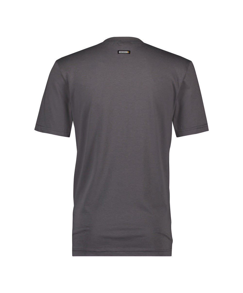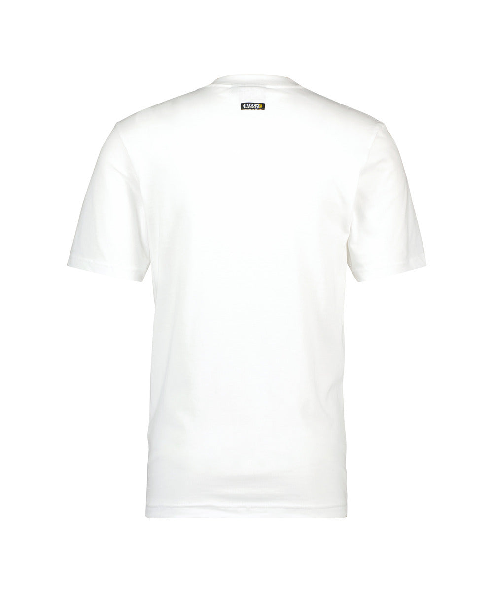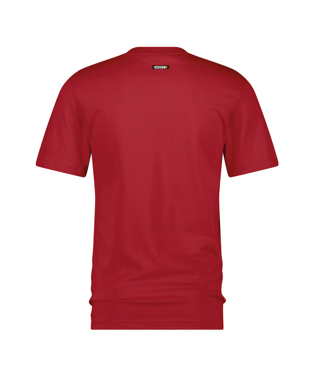Dieses DASSY T-Shirt hat kurze Ärmel und einen runden Halsausschnitt mit Nackenband. Von Schulter zu Schulter ist das T-Shirt zusätzlich verstärkt.Am Kragen, den Ärmeln und dem Bund befindet sich eine doppelnaht.