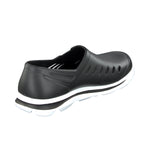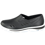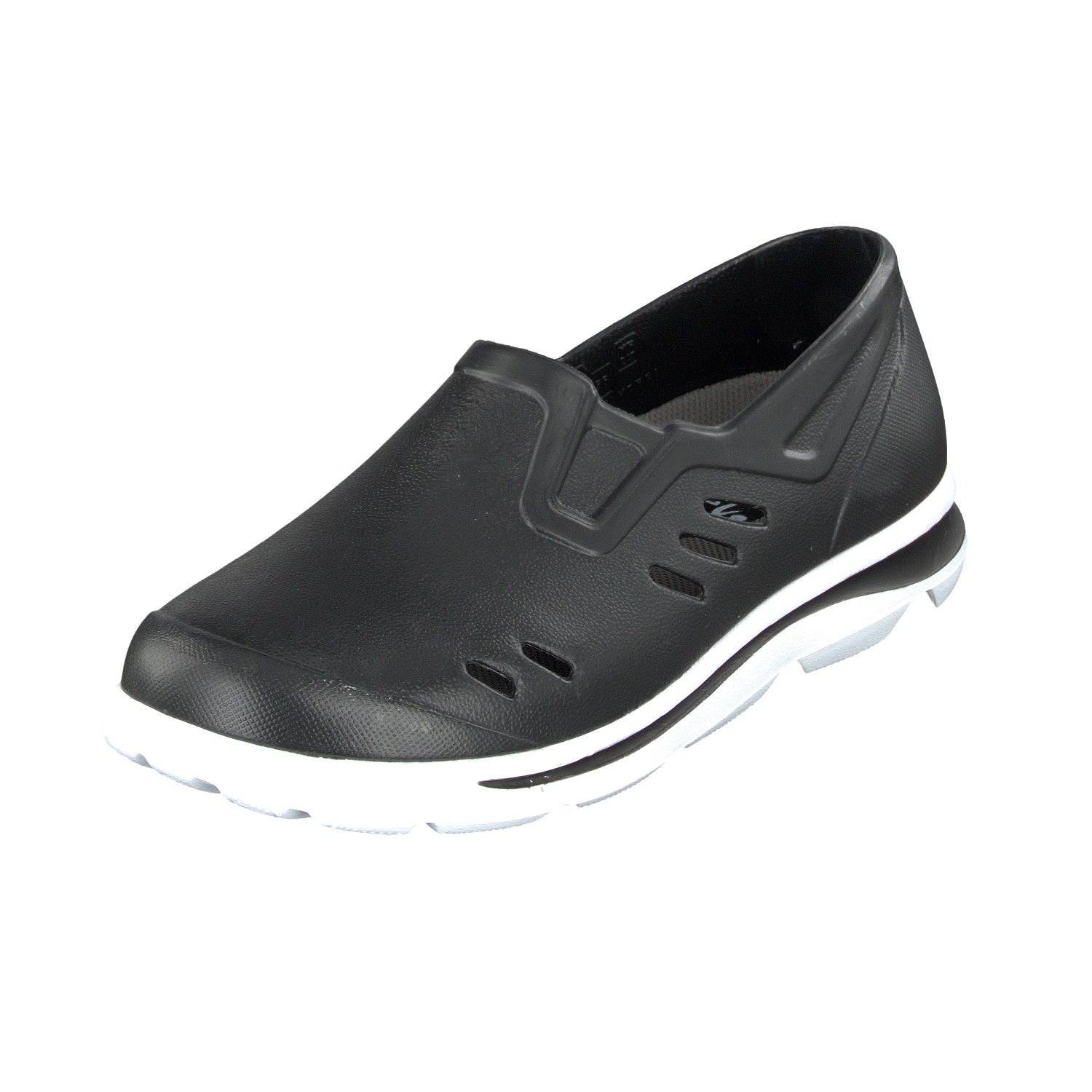 Die optimale Fußpositionierung in Verbindung mit einem rutsch- und abriebfesten Sohlenmaterial verbessert das natürliche Abrollverhalten, unterstützt die gesunde Körperhaltung und sorgt für eine spürbare Entlastung beim Gehen und Stehen. Der geschlossene Fersenbereich garantiert zusätzlichen Halt, während das weiche Obermaterial – ähnlich einem Airbag – Stoßdämpfung im Fersenbereich übernimmt und Druckspitzen effektiv reduziert.