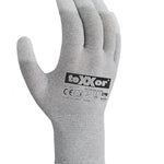 Diese ESD Handschuhe werden in einer Verpackungseinheit von 12 Paar angeboten. Angenehmes Tragegefühl durch Herstellung aus einem Faden, ohne scheuernde Nähte. Hohe Flexibilität und gute Passform, sehr elastisch, dadurch hohe Fingerfertigkeit. Elektrostatisch ableitfähig und touchscreenfähig.