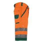 Alle Taschen sind mit Cordura verstärkt, dadurch ist eine hervorragende Beständigkeit gewährleistet. Der Reißverschluss und der Knopf dieser kurzen Warnschutzhose sind verdeckt. Die Reflexstreifen am unteren Ende sind 5 Zentimeter breit und die Rückenelastik dieser Warschutzshort ist verstellbar. Falls Ihnen diese kurze Arbeitshose nur ein wenig zu groß sein sollte, können Sie diese Short auch mit einem Gürtel tragen.