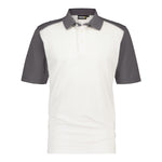 Bei diesem zweifarbigen Polo-Shirt sind die kurzen Ärmel und der Kragen in einer Farbe und der restliche Teil des Shirts in der anderen Farbe gefärbt.