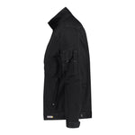Dank dem Kragen ist der Hals auch an windigen Arbeitstagen gut geschützt. Außerdem hat diese Arbeitsjacke einen verstellbaren Bund und Ärmelbündchen. Die Ärmelbündchen werden mit einem Klettverschluss verstellt und der Bund hingegen mit einem Druckknopfverschluss. Der Reißverschluss dieser Arbeitsjacke ist verdeckt und ein zusätzlicher Kinnschutz ist angebracht.