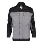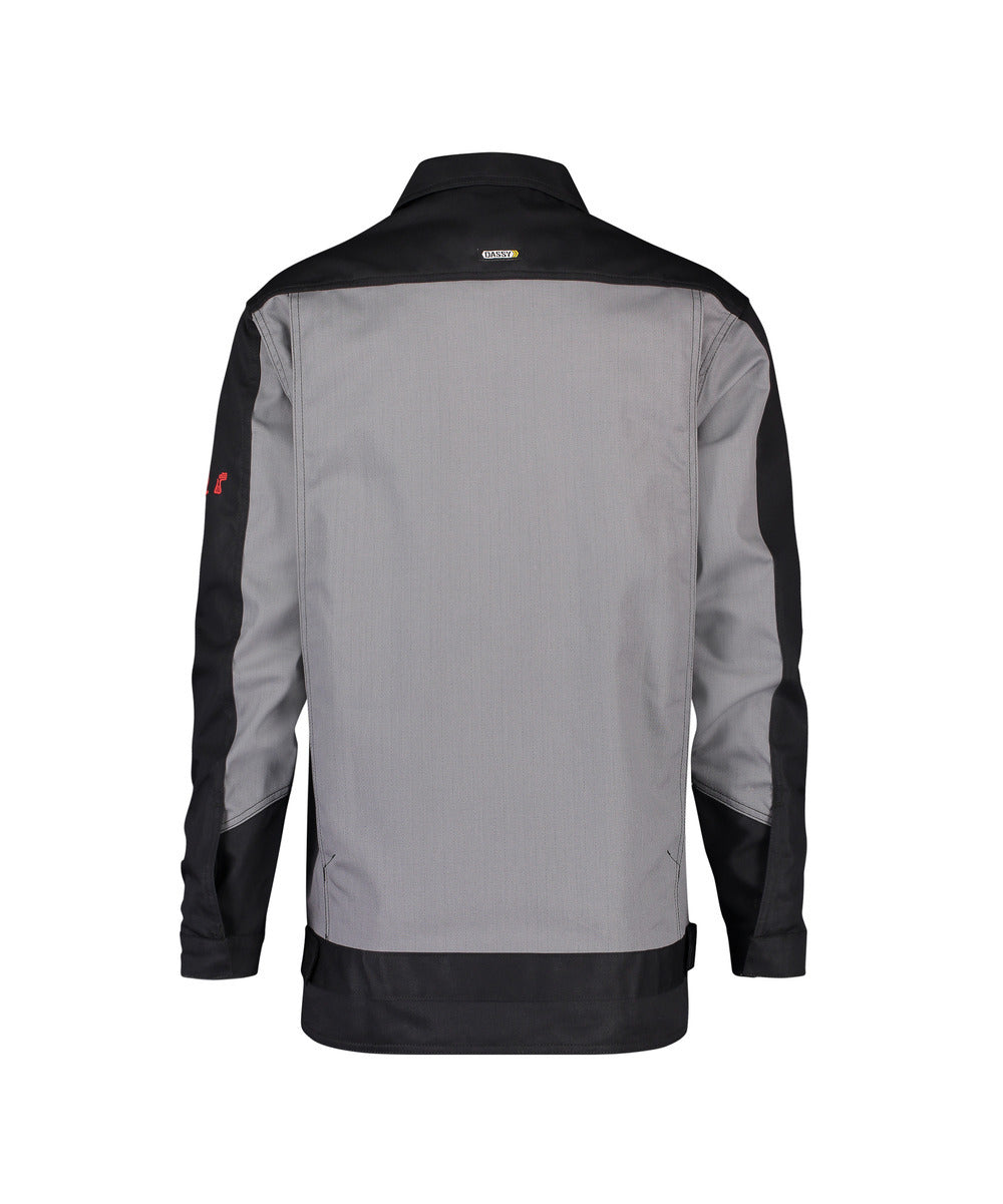 Diese Schweißerjacke hat die Farben grau-schwarze und verfügt über eine Rückendehnfalte, Zwei Schubtaschen, zwei Brusttaschen, einen Ausweishalter und eine Tasche im inneren Bereich.