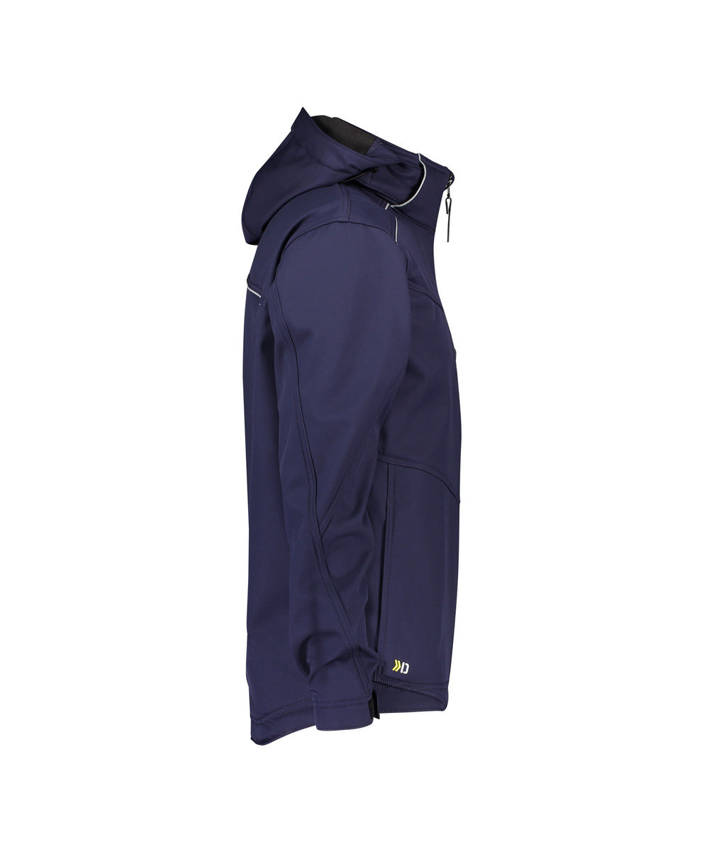 Die Kapuze und der Bund können mit einer elastischen Korder verstellt werden, die Kapuze kann zusätzlich noch abgenommen werden. An dieser dunkelblauen Softshelljacke befinden sich viel praktische Taschen, wo Sie Ihre kleinen Gegenstände unterbringen können.