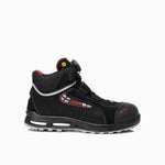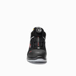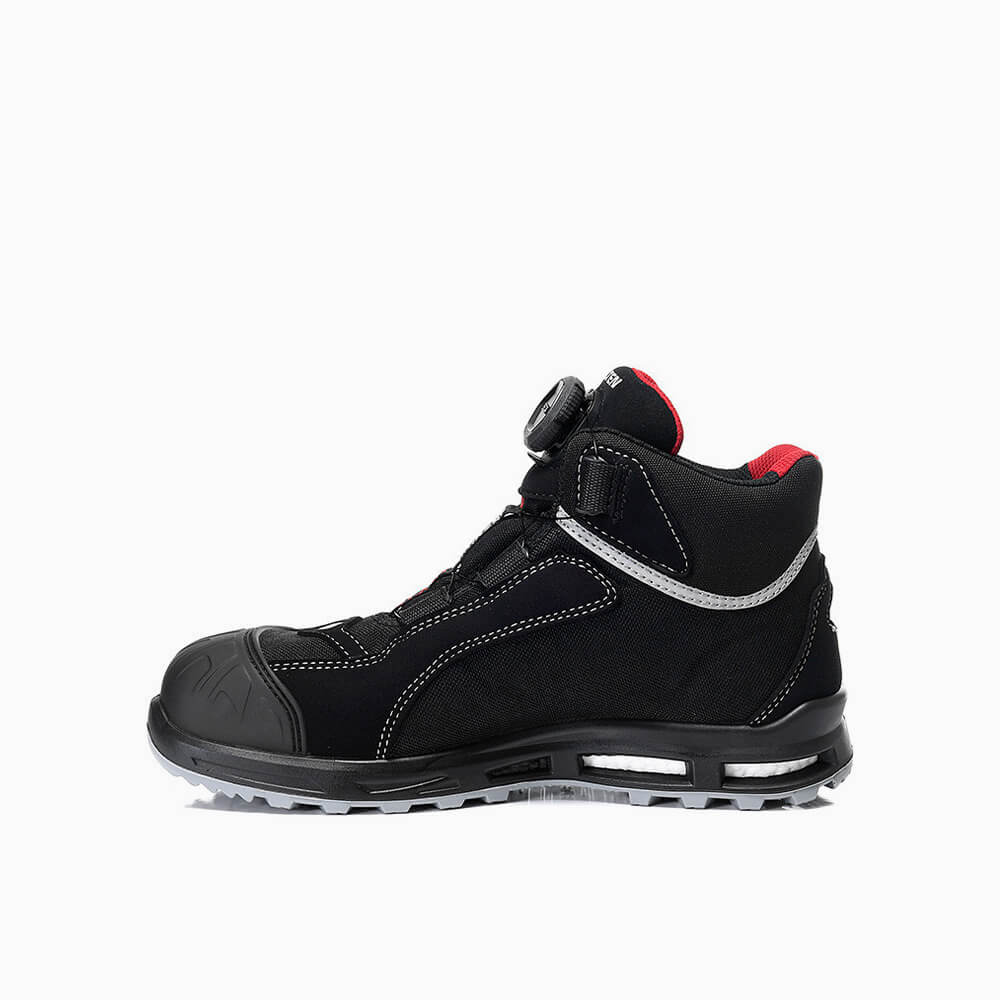 Der Mid-Cut bietet zusätzlichen Halt im Knöchelbereich, während das sportlich-dynamische Design in Schwarz/Rot modern und professionell wirkt.
