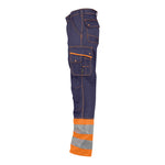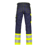 Der Knopf und der Reißverschluss, mit dem die Warnschutzhose geöffnet und geschlossen wird, sind verdeckt. Alle Taschen sind mit Cordura® verstärkt und daher sehr stabil. Der Saum dieser Warnschutzhose ist 5 Zentimeter breit. Diese extra breite Saum ist vorallem beim anziehen der Schuhen sehr praktisch. Mit dreifachen Kappnähten und einer Stickerei in den Kontrastfarben sorgt für ein interessantes Aussehen. Die Reflexstreifen dieser DASSY Warnschutzhose sind 7 Zentimeter breit, dadurch werden Sie auch an grauen Arbeitstagen gut gesehen. Besonders vorteilhaft ist die Rückenelastik, die individuell verstellt werden kann.